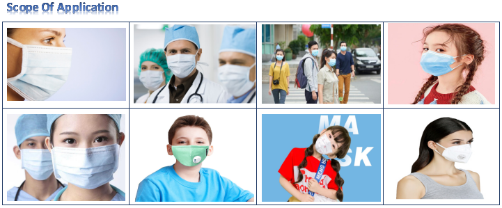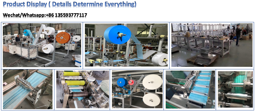 1.This machine can produce 1 to 4 layers face mask made of non-woven fabrics, with high output, low rejection rate and easy to be used. It’s adjustable in specification of product, like the thickness (in a limit extent) and the nose-shaping metal bar of face mask. By changing the mould, it can produce face mask of any length and any standard. For example, face mask with one of two nose-shaping metal bar can be made. Putting covered yarn and rubber band into the conveyer case, the machine will convey, cut and seal rubber band automatically. It can also complete belt pointing once. The surface of machine is made of aluminum alloy structure.