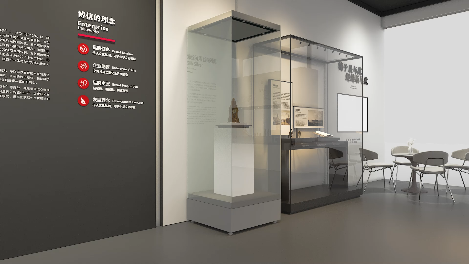 為避(bì)免設備破壞展(zhǎn)陳美感,博(bó)信對恒溫恒濕(shī)機進行全隱藏式視覺處理:展櫃外部無任何設備接口、管線裸露,設備(bèi)運行區域采用