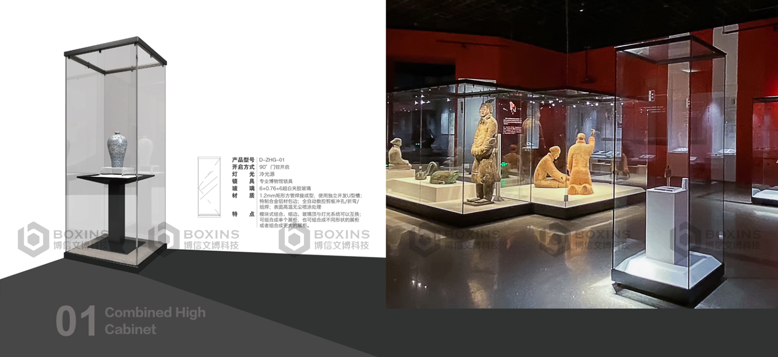 可增加光導纖維照明係統、恒溫恒(héng)濕(shī)係統、防震台(tái)、紅(hóng)外線控製報警裝置,選用超白夾膠玻璃或低反射夾(jiá)膠玻璃。