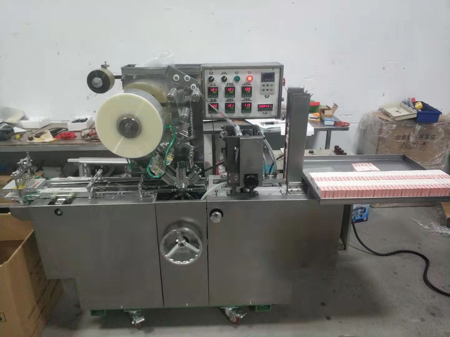 適用於化妝(zhuāng)品、保健品等(děng)以及相類似物品的外盒透明膜包裝。該包裝機是采用環保型OPP或BOPP薄膜