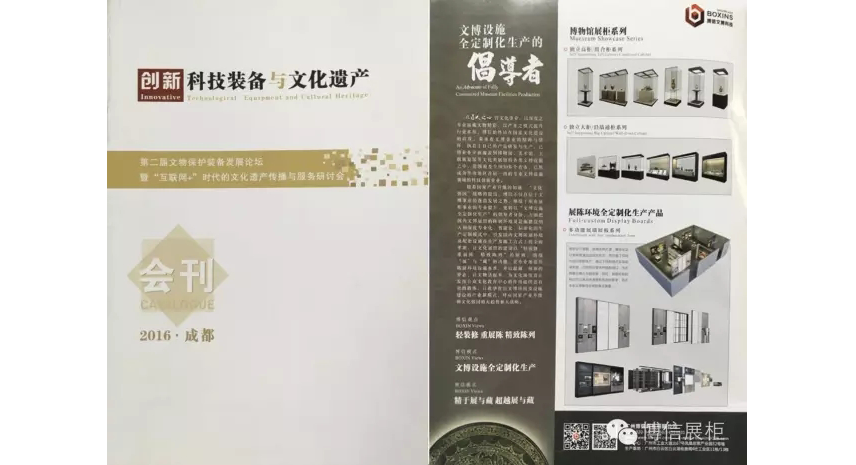圖為博信(xìn)展櫃文博設施全定製(zhì)化生產的倡導者觀點和博物館展櫃係(xì)列在(zài)《創新(xīn)科技裝備(bèi)與文(wén)化遺產》會刊封麵二專業展示