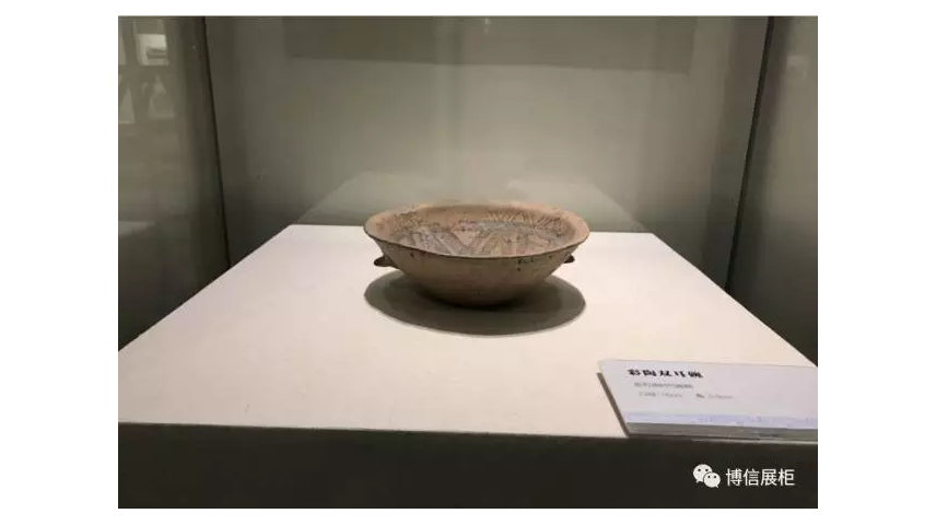 ▼透過超白玻璃(lí)屏,彩陶雙耳碗在麻布托台的映襯下,千年紋路愈加(jiā)清晰可見